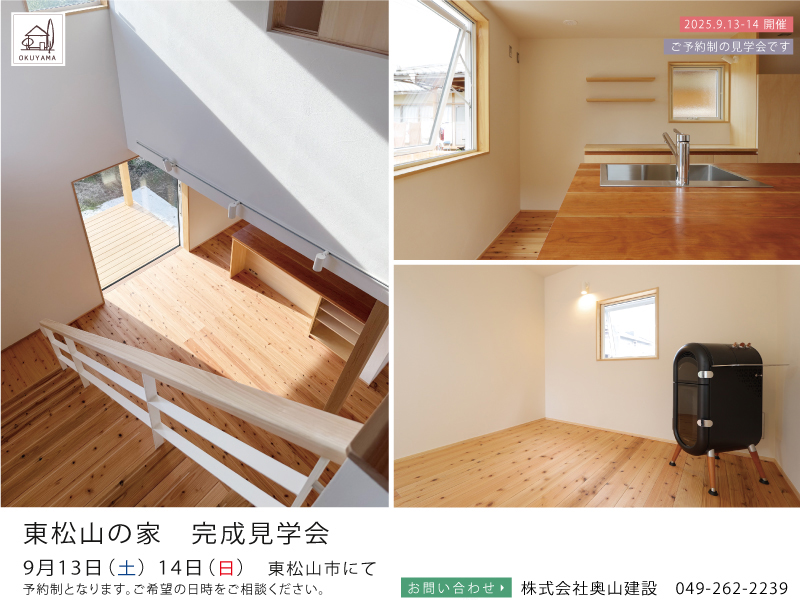 東松山市の家が上棟しています。 建築中の現場の様子をぜひご見学ください。 □ 東松山の家 DATA 延床面積: […]
