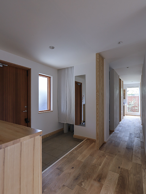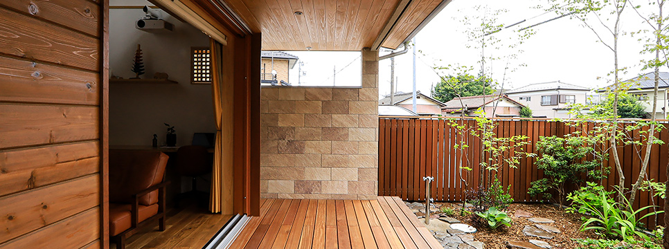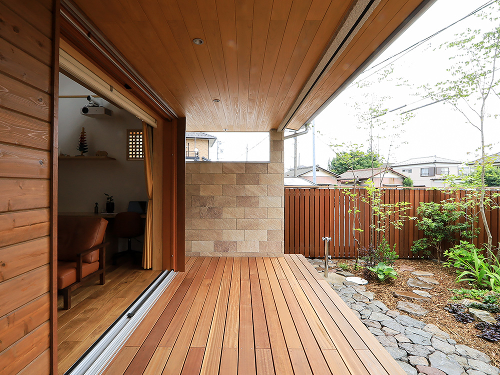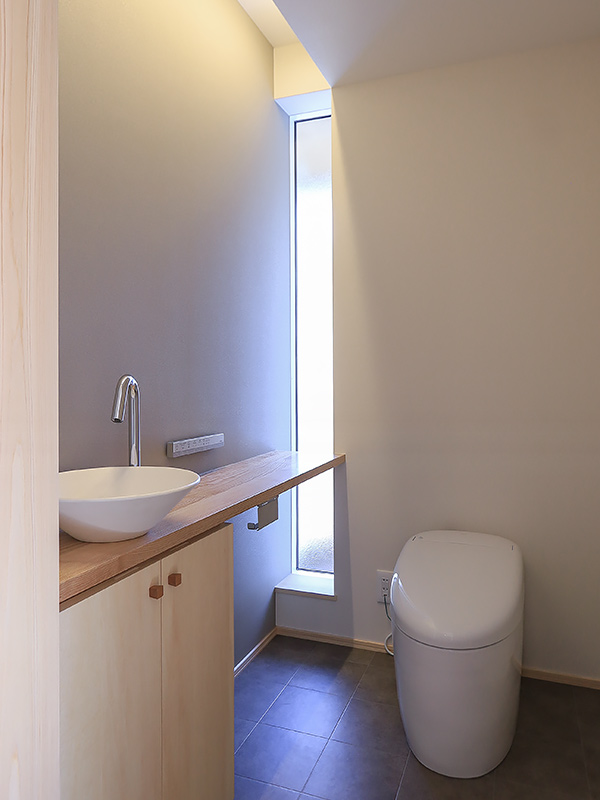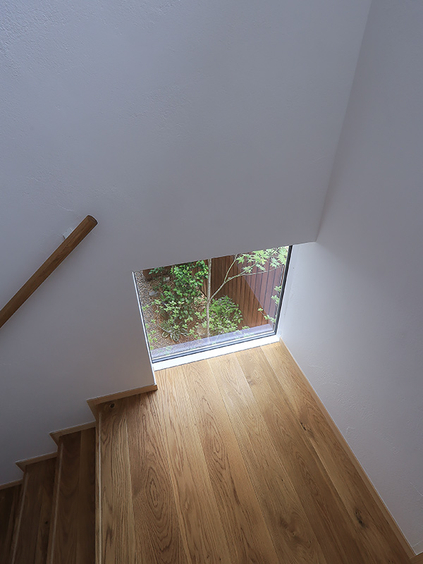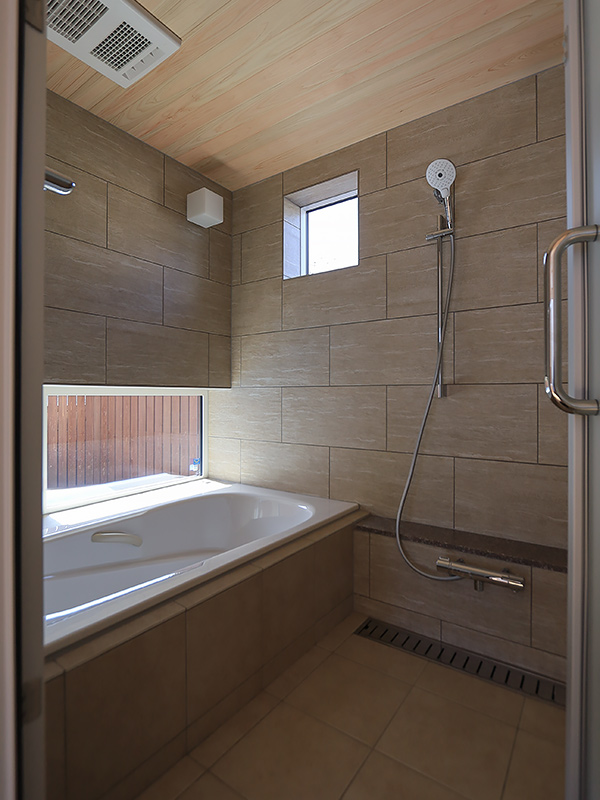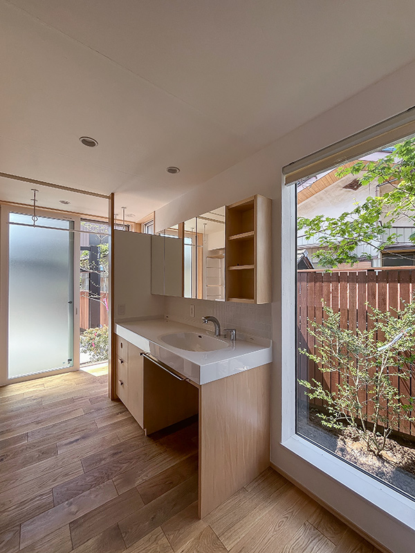 独立した和室と、浴室や洗面室からも木々が感じられるように開口部を設計し、日々の生活に庭を取り込みました。