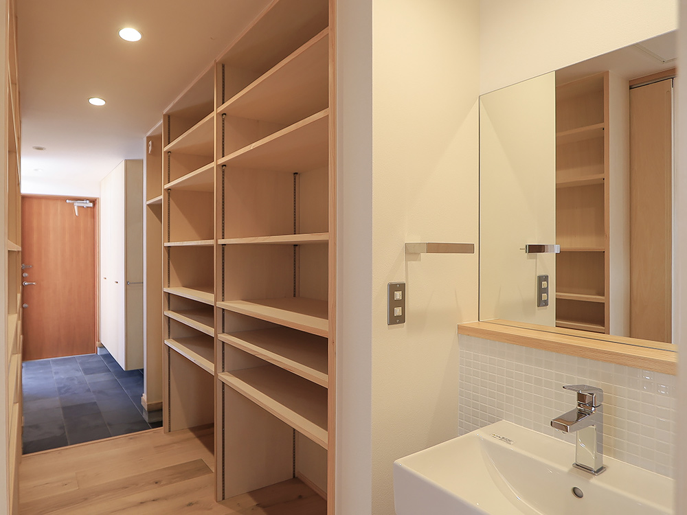 身丈に合わせて設計した造作キッチンと、家事がはかどる大容量のパントリー。
