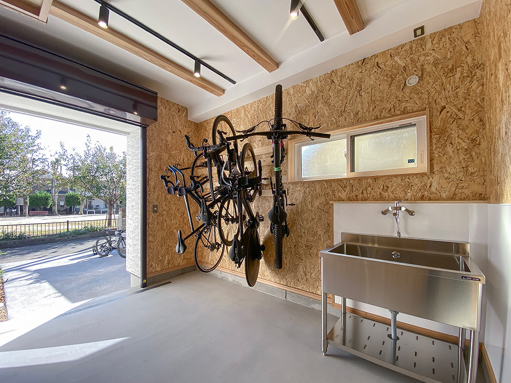 趣味の自転車をとことん楽しめる、土間スペース。